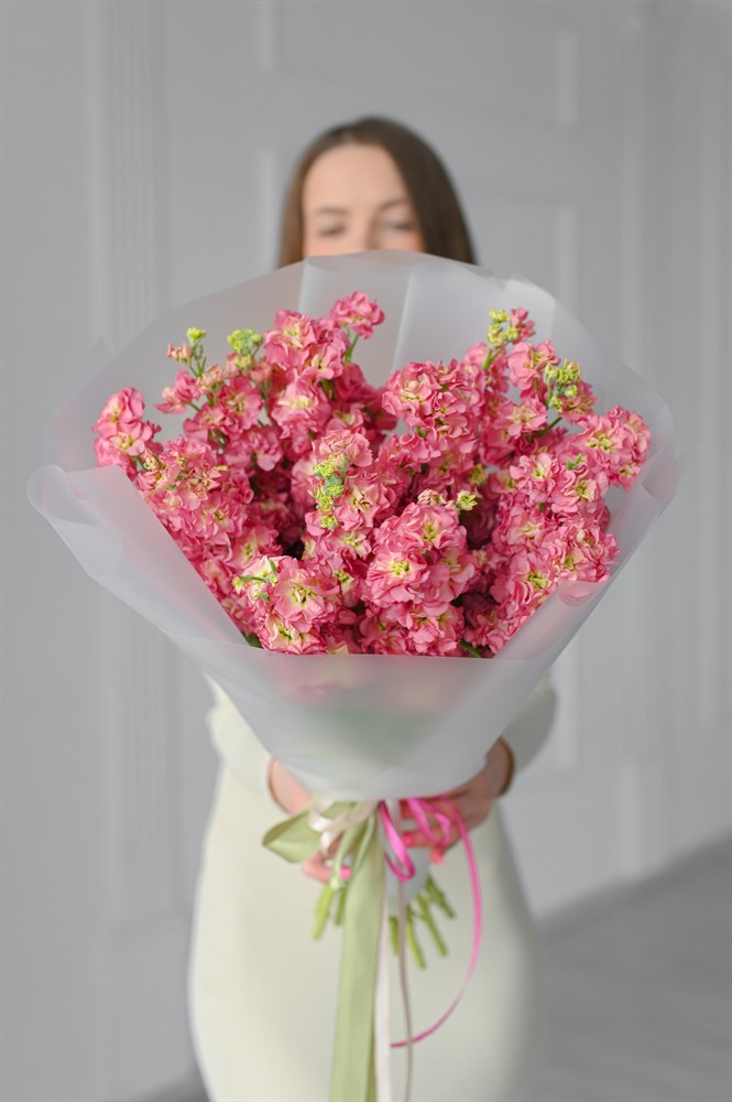 Букет 'Маттиола розовая 15шт' — это воплощение нежности и утончённости. Великолепные цветы прекрасно подойдут для особого случая или чтобы порадовать близких. Такой букет напомнит о важности маленьких радостей жизни.