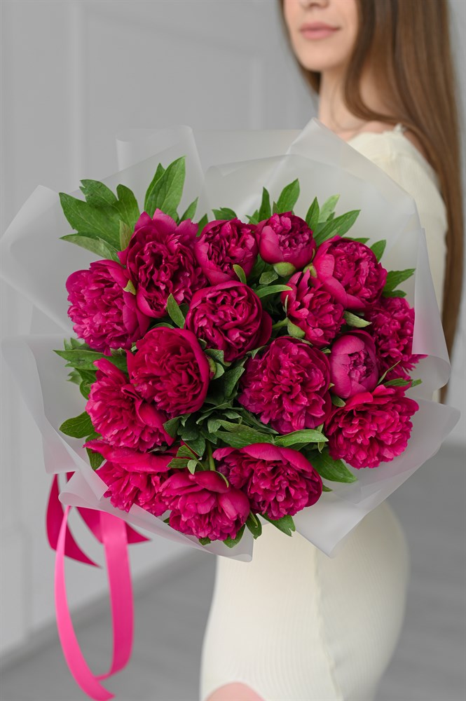 Букет 'Пионы бордовые 15шт' станет идеальным дополнением к любому событию, будь то романтический вечер или торжественный момент. Цветы в этом букете подчеркнут важность каждого мгновения.